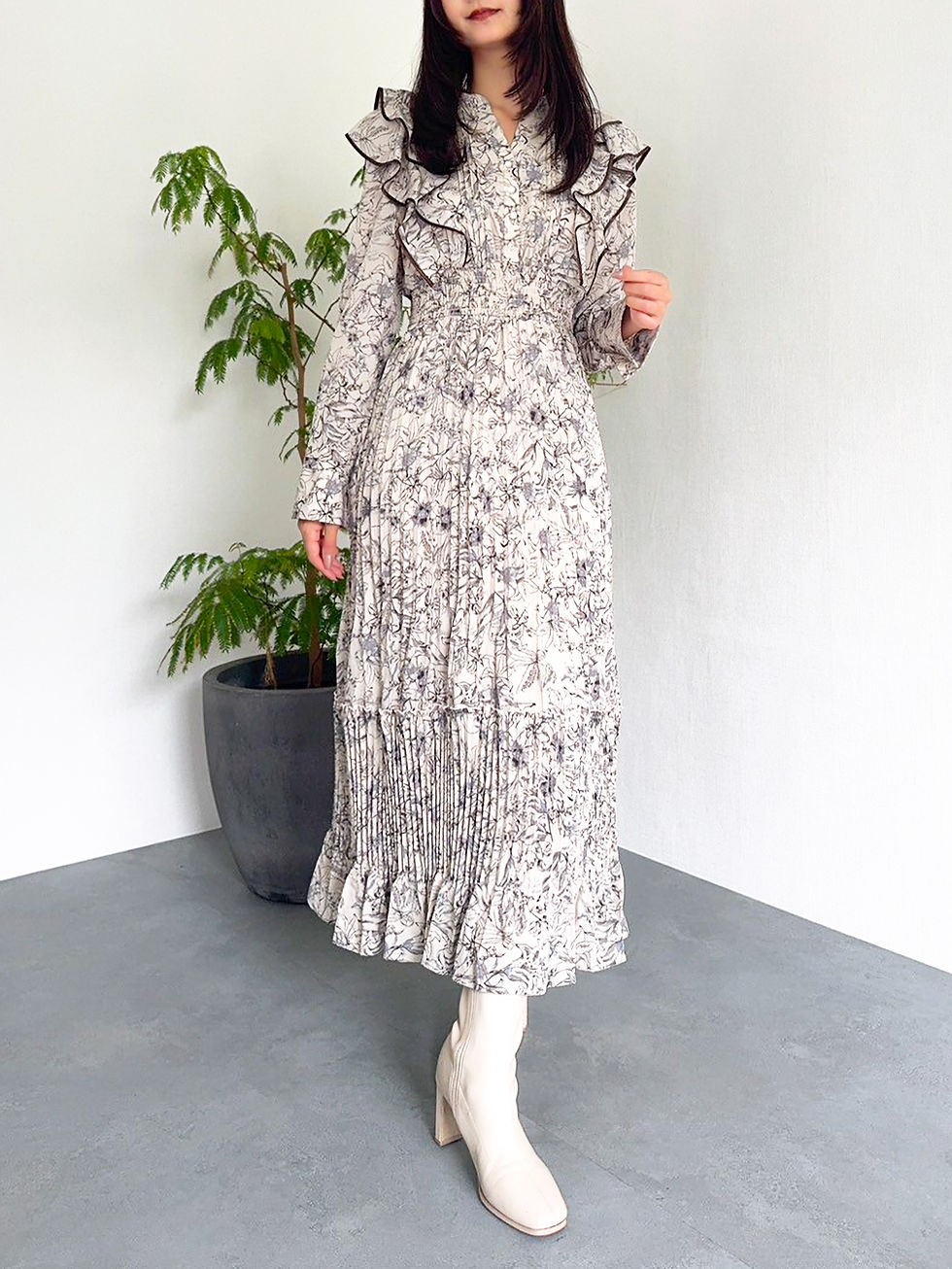 全体を柔らかなトーンでまとめ、抜け感のあるリラックススタイルに。