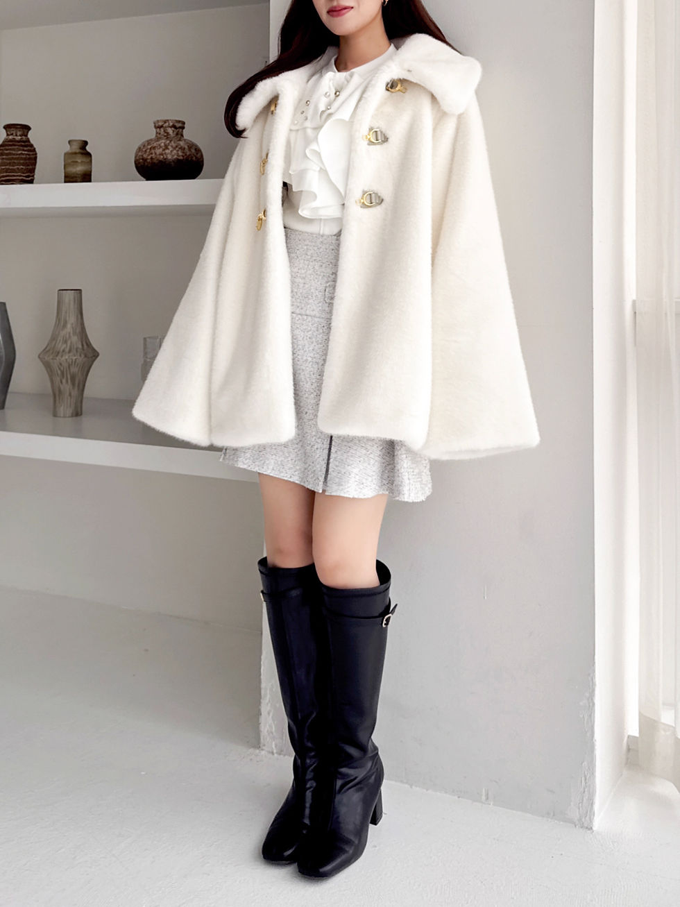 シアーのディテールが軽やかさを演出し、春先まで活躍してくれます。